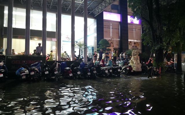 Không chỉ xe máy, nhiều ô tô khi đi qua đoạn ngập đã tạo thành những đợt sóng lớn, hất tung nước lên người đi đường. Cảnh tượng phố biến thành sông, người dân bì bõm trong nước tái diễn ở nhiều tuyến đường vốn là “điểm đen” ngập úng của Hà Nội mỗi khi mưa lớn.