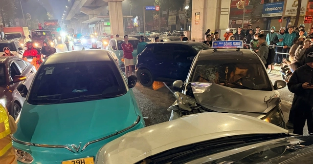Tối muộn 11/2, một nữ tài xế ô tô (biển kiểm soát Hà Nội) đi ngược chiều trên đường Quang Trung đã gây ra vụ tai nạn liên hoàn. Tại hiện trường, 5 ô tô bị hư hỏng.