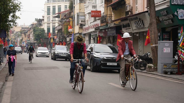 Nhiều người dân dậy sớm, đạp xe quanh phố để tận hưởng không khí trong ngày đầu tiên của năm mới Bính Ngọ