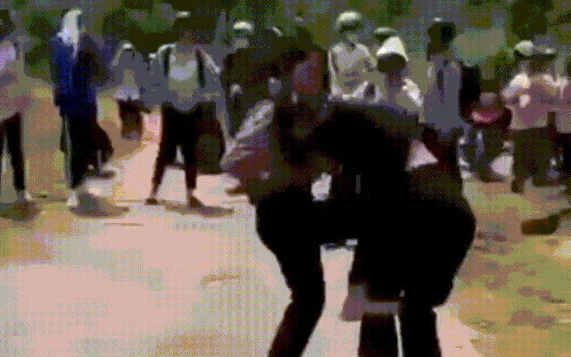 Hai học sinh đánh nhau, xung quanh nhóm bạn reo hò, cổ vũ phản cảm.