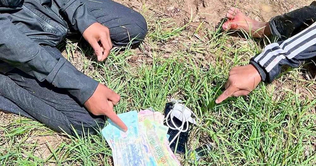 Trong lúc tăng ga trốn chạy, không may xe máy hết xăng nên cả 2 bỏ xe, chạy bộ xuống ruộng thì bị công an bắt giữ. Kiểm tra trên người đối tượng, công an thu giữ hơn 9 triệu đồng.