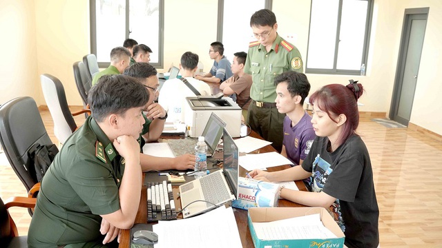 Cán bộ Đồn Biên phòng và Công an các tỉnh làm việc với công dân từ Campuchia trở về (Ảnh: Bộ Công an).