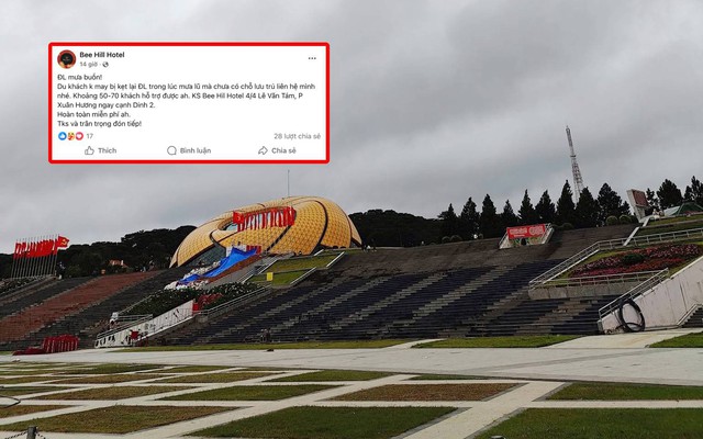 Bee Hill Hotel là một trong những nơi phản ứng rất nhanh. Trong bài đăng mới nhất, khách sạn thông báo sẵn sàng hỗ trợ chỗ lưu trú hoàn toàn miễn phí cho khoảng 50-70 du khách không may bị kẹt lại Đà Lạt vì mưa lũ. Bee Hill viết: "Du khách kẹt lại Đà Lạt mà chưa có chỗ lưu trú liên hệ mình nhé. Hoàn toàn miễn phí. Tụi mình trân trọng đón tiếp!" . Khách sạn nằm gần Dinh 2, thuận tiện cho việc di chuyển khi thời tiết cải thiện.