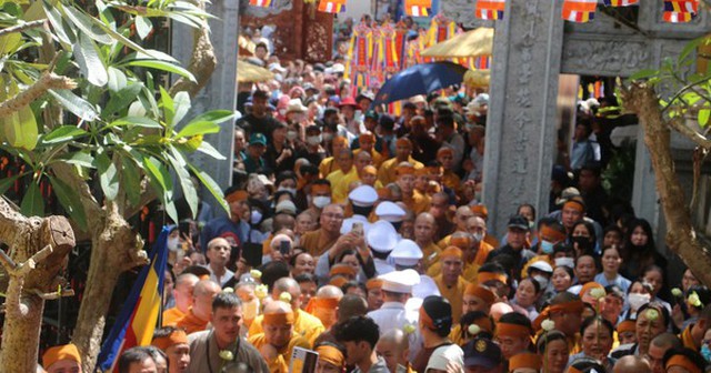 Từ sáng sớm, dòng người từ khắp nơi đã đổ về chùa, tay chắp thành kính, mắt rưng rưng hướng về kim quan của bậc cao tăng khả kính. Dọc tuyến đường vào chùa, nhiều người dân đứng hai bên chắp tay niệm Phật, bày tỏ lòng tiếc thương và tri ân.