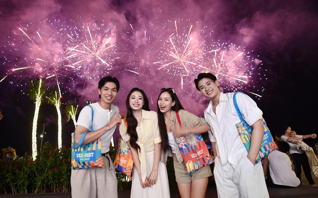 Ngay sau cao trào thủy diễn là màn pháo hoa tầm cao bùng nổ cảm xúc tại VUI-Fest Ha Long. Hàng nghìn quả pháo với hơn 50 hiệu ứng đa tầng được trình diễn trên nền trời vịnh di sản, kết hợp âm nhạc và hệ thống ánh sáng hiện đại, tạo nên tổng thể thị giác ấn tượng. VUI-Fest Ha Long lúc này đã vượt khỏi khuôn khổ một khu chợ đêm thông thường để trở thành tổ hợp giải trí đẳng cấp. Hàng ngàn du khách thích thú check-in cảnh tượng rực rỡ chưa từng có này tại miền di sản.