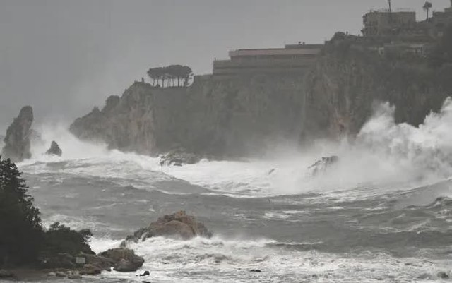 Bão Harry gây sóng lớn đánh vào bờ biển phía Đông đảo Sicily, Italy (Ảnh: EPA)