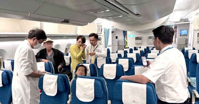 Vietnam Airlines phối hợp cùng các bác sĩ có mặt trên chuyến bay cấp cứu kịp thời nữ hành khách, hỗ trợ và xử lý sau khi máy bay hạ cánh