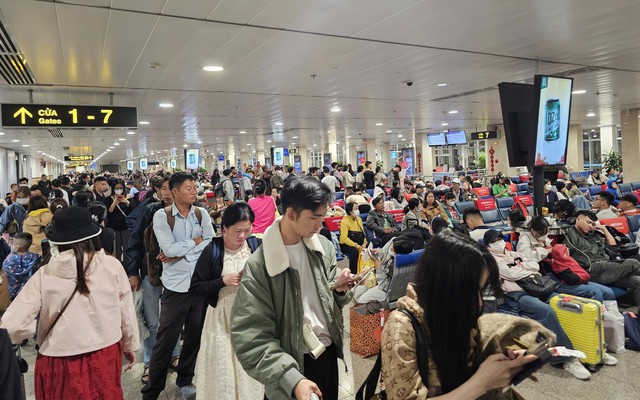 Rạng sáng 13/2 (tức 26 tháng Chạp âm lịch), sân bay quốc tế Tân Sơn Nhất (TPHCM) đông nghịt người. Lượng hành khách đổ về sân bay tăng đột biến để kịp về quê đón năm mới.