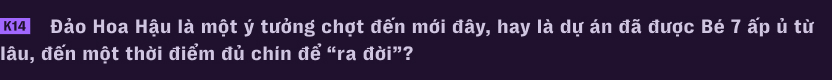Thực tế, ý tưởng về Đảo Hoa Hậu đã được tôi ấp ủ từ hai năm trước. Tuy nhiên, lúc đó tôi mới về đầu quân cho sân khấu kịch Nhà hát Thanh Niên được khoảng ba năm, và bản thân tôi hiểu rõ cái tên Bé Bảy vẫn còn quá mới mẻ. Khi tôi đem ý tưởng này chia sẻ với anh BB Trần, anh đã rất thích và ủng hộ nhiệt tình. Sau đó, tôi thử trình bày với giám đốc sân khấu nhưng khi đó chưa đủ điều kiện thuận lợi để làm một vở kịch mới. Tôi từng nghĩ đến một lúc nào đó mình sẽ tự đầu tư để làm nên Đảo Hoa hậu. Đến khoảng một năm trước thì quyết tâm trong tôi mãnh liệt hơn. Tôi quyết định chia sẻ lần nữa để tìm cơ hội. May mắn chị Ruby Hồng Ngọc - đạo diễn, quản lý Nhà hát sân khấu kịch Thanh Niên và anh Thảo giám đốc đã ủng hộ, hỗ trợ tôi rất nhiều.