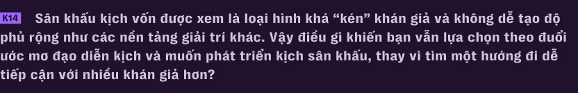 Sau khoảng 4 - 5 năm làm TikTok, tôi quyết định chuyển hướng sang sân khấu kịch. Nhưng chỉ sau một năm, tôi bắt đầu hoài nghi về lựa chọn của chính mình. Dù khát khao trở thành diễn viên chuyên nghiệp luôn cháy bỏng, nhưng lúc đó, cánh cửa điện ảnh dường như quá xa vời. Tôi cũng loay hoay không biết làm sao để vực dậy sức sống cho sân khấu kịch trong bối cảnh loại hình này chưa được công chúng quan tâm nhiều.