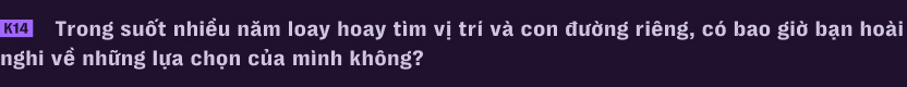 Tôi chạnh lòng vì một người chỉ quan sát mình trên set quay lại có thể nhìn ra điều đó, trong khi chính bản thân tôi lại chưa từng thật sự tin vào mình, chưa từng cho mình một cơ hội. Từ khoảnh khắc đó, tôi bắt đầu suy nghĩ nghiêm túc hơn về việc phải phát triển bản thân, thay vì chỉ làm tốt một vai trò phía sau cho tập thể.