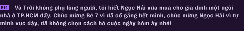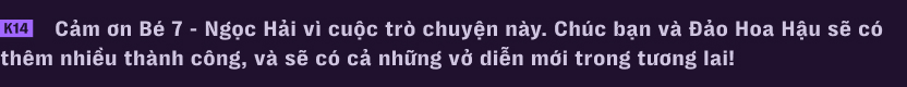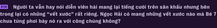 Trong cuộc trò chuyện này, Bé 7 không chỉ kể về hành trình làm nghề, mà còn hé lộ câu chuyện của Ngọc Hải. Một chàng trai từng chấp nhận từ bỏ ước mơ diễn xuất để làm công nhân may, cùng gia đình sống trong căn phòng trọ 9m2 và chắt chiu tiền trả nợ, cho đến một content creator nổi tiếng, một đạo diễn sân khấu kịch với vở diễn cháy vé và viral khắp mạng xã hội. Đó là hành trình một người đã xém chút nữa từ bỏ tất cả, nhưng rồi lại nhận ra cuộc sống này còn quá nhiều thứ để nỗ lực, hy vọng và đặt niềm tin vào.