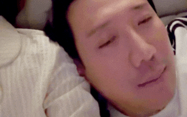 Nam MC có hành động cắn ngón tay khi ngủ khiến vợ bật cười (Ảnh: FBNV)