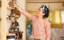 Bên cạnh đó ngôi nhà cũng sở hữu căn bếp rộng rãi với đầy đủ thiết bị hiện đại. Chiếc đảo bếp màu trắng là nơi Linh Rin thường xuyên lui đến để làm bánh.