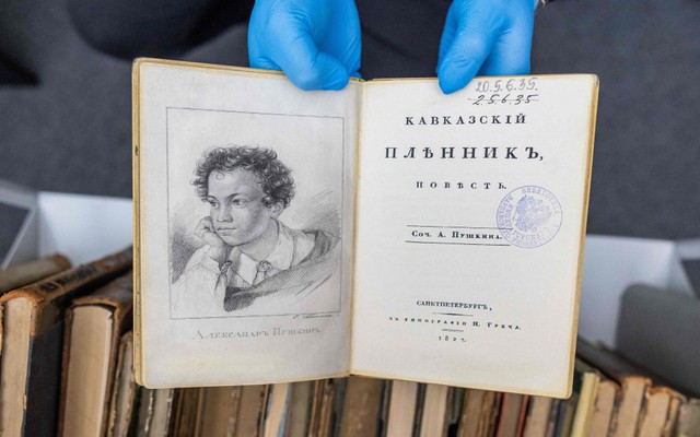 Trước mặt họ là 8 cuốn sách cũ, giấy đã ngả vàng, được lấy từ kho lưu trữ kín gồm các ấn bản thế kỷ 19. Đó là những tác phẩm kinh điển của đại thi hào người Nga Alexander Pushkin và tiểu thuyết gia người Nga Nikolai Gogol.