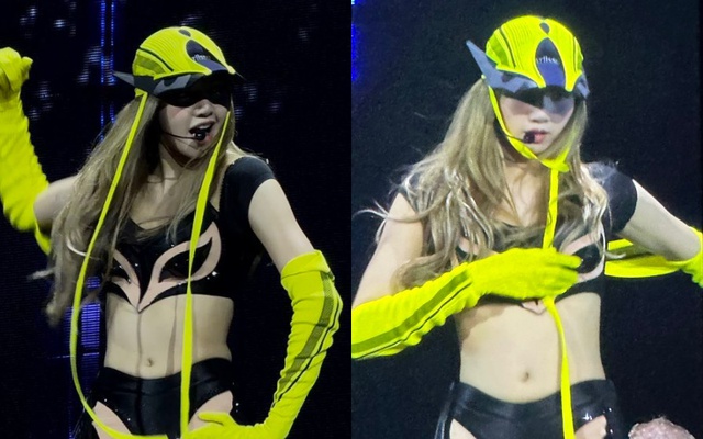 Trên sân khấu, Lisa xuất hiện với bộ outfit mang phong cách futuristic với tông đen - neon nổi bật. Điểm nhấn nằm ở phần bodysuit cắt xẻ táo bạo chạy dọc từ eo xuống chân, kết hợp chất liệu da bóng tạo hiệu ứng thị giác rất mạnh. Thực tế, các khoảng hở đã được “che chắn” bằng lớp vải nude ôm sát. Tuy nhiên, chính cách xử lý đường cắt xẻ bằng da ôm trọn cơ thể tạo các mảng khoét lớn lại khiến tổng thể outfit gây cảm giác hở hang và khiến nhiều người không khỏi “nóng mắt”.