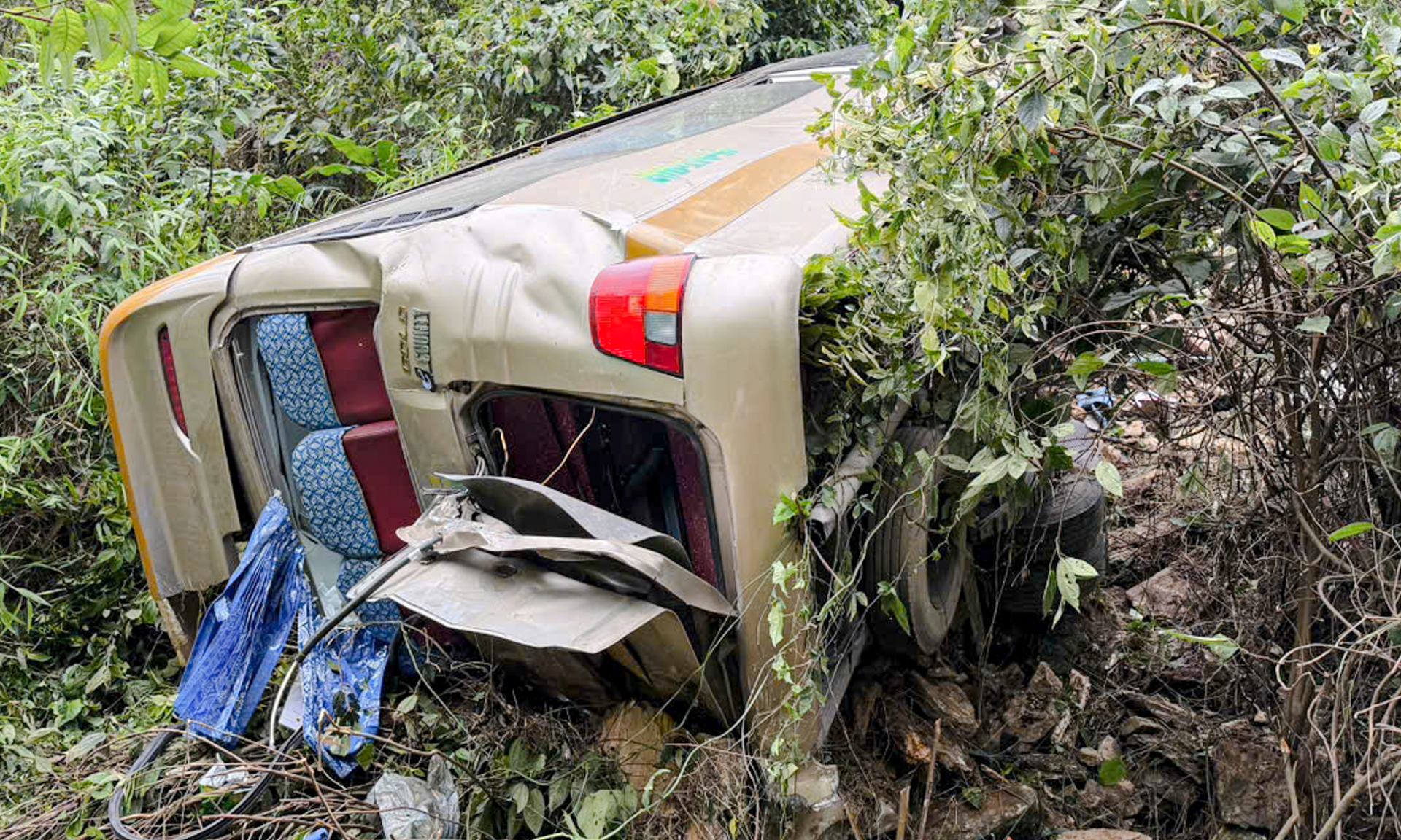 Khi đến khu vực trên, do đoạn đường đèo dốc quanh co, mặt đường hẹp khoảng 2,5m, lái xe không quen địa hình nên không làm chủ được tay lái, phương tiện lao xuống taluy âm sâu khoảng 100m.