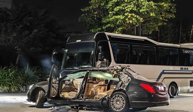 Camera an ninh của người dân ghi lại cho thấy sau cú va chạm mạnh, xe khách rung lắc dữ dội, còn chiếc Maybach xoay nhiều vòng rồi văng ra xa vài mét. Phần đầu và thân xe Maybach biến dạng nặng, cửa sau bên trái bung bật , xe khách cũng hư hỏng nghiêm trọng ở phần đầu.