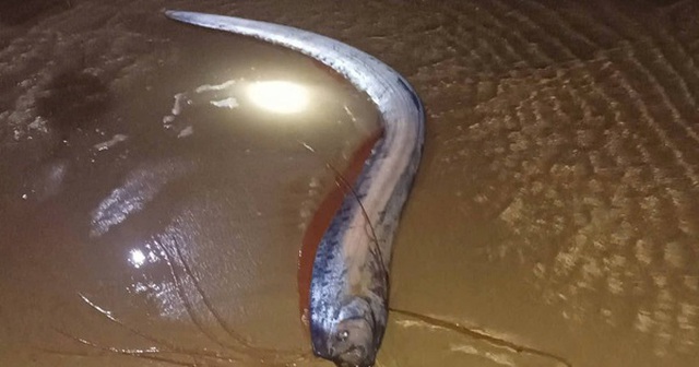 Theo ghi nhận tại hiện trường, con cá có thân dài, dẹt, màu bạc ánh kim, phần vây đỏ chạy dọc thân – đặc trưng của loài cá mái chèo sống ở tầng nước sâu. Khi phát hiện, cá đã yếu và nằm bất động trên bãi cát.