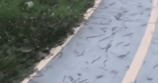 Trong đoạn clip, rất nhiều con giun đất bỏ lên mặt đường khiến nhiều người đi qua đây không khỏi bất ngờ.