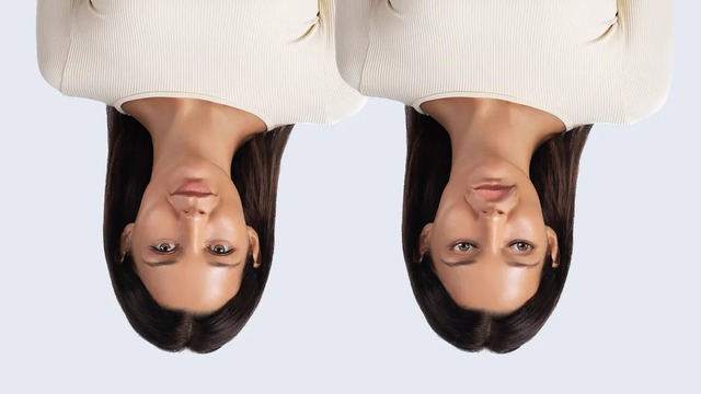 Ở cái nhìn đầu tiên, hai khuôn mặt dường như hoàn toàn giống nhau. Tuy nhiên, khi được lật lại đúng chiều, người xem mới giật mình nhận ra một trong hai bức ảnh đã bị chỉnh sửa với các đặc điểm như mắt và miệng bị xoay ngược.