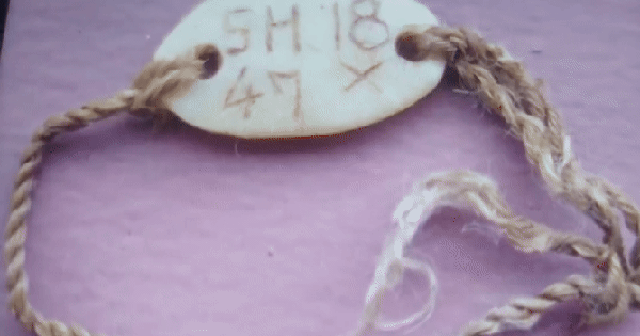 Biển nhỏ đeo tay làm bằng nhựa có dòng chữ “SH-18-47X” được tìm thấy cùng hài cốt liệt sĩ vào tháng 5-2025