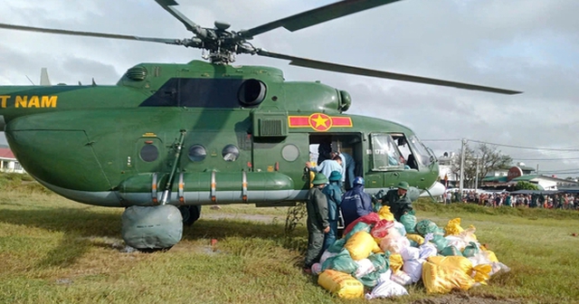 Trực thăng hỗ trợ vùng bị cô lập sáng 23/11 (Ảnh: Lê Tâm).