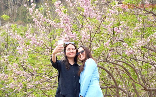 Ghi nhận tại các khu vực như đường ven Núi Lớn, Núi Nhỏ, khu vực đồi con Heo, một số công viên, những hàng đỗ mai đang vào thời điểm nở rộ nhất.