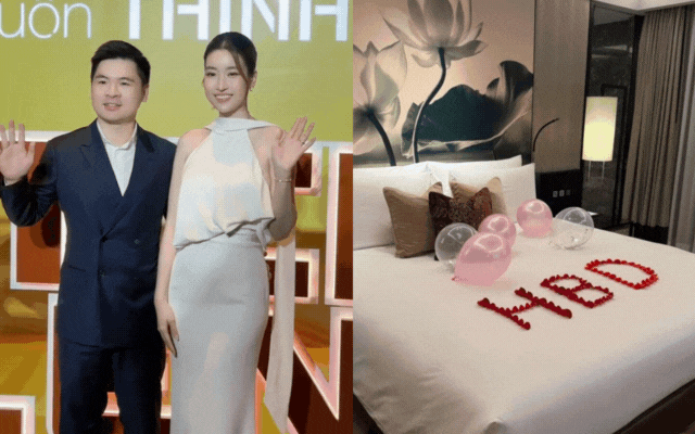 Mới đây, Đỗ Mỹ Linh và ông xã tiếp tục khiến netizen chú ý khi chia sẻ những hình ảnh từ chuyến nghỉ dưỡng tại Thái Lan. Không chỉ là kỳ nghỉ đơn thuần, đây còn là dịp đặc biệt khi Hoa hậu Việt Nam 2016 đón sinh nhật tuổi 29 bên chồng. Trong bức ảnh được Chủ tịch Hà Nội FC chia sẻ trên trang cá nhân, căn phòng khách sạn hạng sang nơi anh cùng Đỗ Mỹ Linh nghỉ ngơi được trang trí tinh tế với hoa hồng xếp chữ "HBD", những quả bóng bay màu pastel nhẹ nhàng cùng không gian ấm cúng - tất cả toát lên sự lãng mạn và chu đáo.