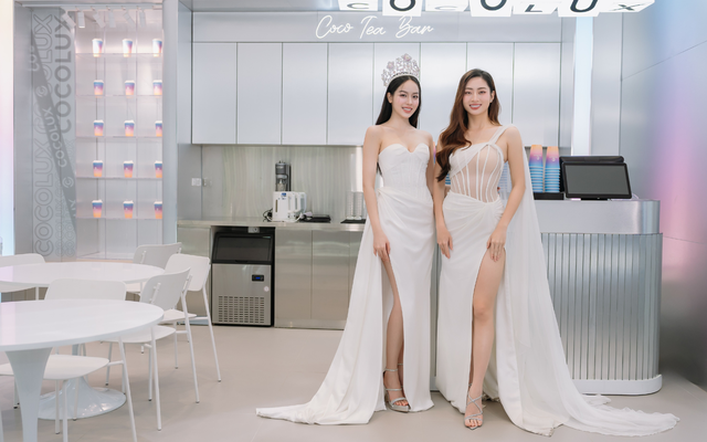 Hoa hậu Thanh Thủy - Lương Thùy Linh nhí nhảnh check-in tại quầy Coco Tea Bar