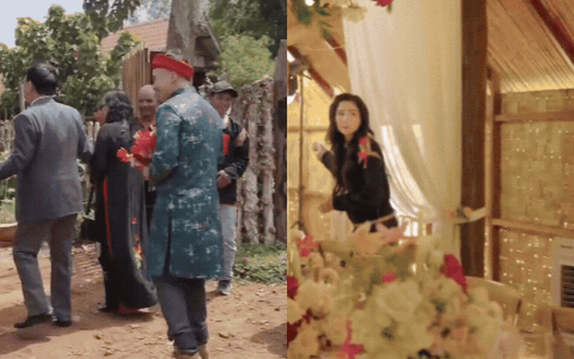 Trong clip, lễ cưới diễn ra tại nhà riêng của H'Hen Niê ở Đắk Lắk, theo đúng nghi thức truyền thống của người Ê Đê. Không gian buổi lễ được bài trí bên trong nhà sàn, sử dụng hoa tươi và các chi tiết trang trí mang gam màu ấm, tạo cảm giác gần gũi nhưng vẫn tinh tế.