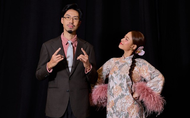 Trong loạt ảnh, Hoàng Thuỳ Linh diện áo dài cách tân dịu dàng, Đen Vâu lịch lãm với vest trầm màu. Cả hai thoải mái tạo dáng cạnh nhau, có những khoảnh khắc nhìn đối phương đầy trìu mến. Ở một vài tấm hình sân khấu, họ cùng cầm phong bao lì xì đỏ, nụ cười rạng rỡ và tương tác tự nhiên đến mức không ít người nhận xét: "Không còn là đồng nghiệp đơn thuần nữa".