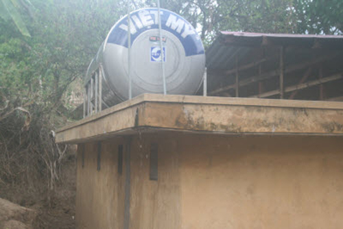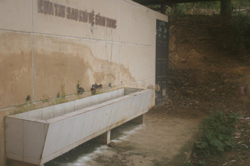 Trao đổi với chúng tôi, cô giáo Quách Thị Khuy - Hiệu trưởng nhà trường tâm sự: “Khu nhà vệ sinh này được bàn giao vào khoảng tháng 2/2009 nhưng ở trạng thái chưa có nước. Đến cuối tháng 12/2009 thì dự án cấp nước sạch mới làm được được đường ống dẫn về trường và lúc đó công trình vệ sinh mới được thực sự sử dụng. Tuy nhiên do chất lượng công trình thi công không đảm bảo nên mặc dù mới chỉ hơn 6 tháng sử dụng đã cho thấy dấu hiệu xuống cấp”.