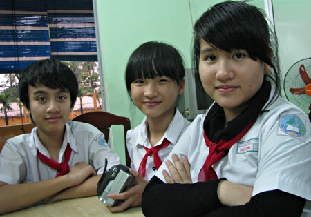 Tuấn Quang, Lan Phương, Thùy Dung (từ trái sang) cùng chung sở thích điện ảnh và đều là những học sinh giỏi toàn diện.