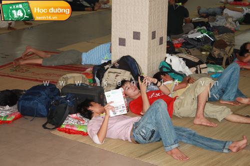 Và có bạn lại tranh thủ học bài.