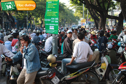 Giao thông tắc nghẽn, phụ huynh lẫn học sinh chen nhau tìm chỗ ngồi, chỗ trú nắng. Nét mặt căng thẳng và đang cực kỳ lo lắng của các bạn thí sinh cho ngày thi đầu tiên của ngày mai.