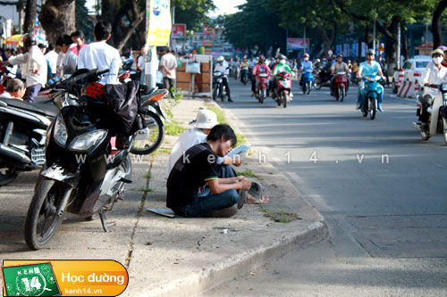 Dù 8h sáng mới bắt đầu làm thủ tục dự thi cho kỳ thi Đại học năm 2010. Nhưng lề đường trước cổng trường Đại học Khoa học tự nhiên hầu như không còn chỗ trống để phụ huynh có thể ngồi đợi hoặc có chỗ thông thoáng cho các bạn thí sinh nghỉ ngơi. Nhiều phụ huynh phải dắt xe sang phía bên kia đường vừa trú nắng, vừa đợi con.