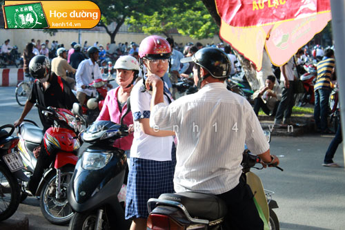 Rất nhiều phụ huynh đứng đợi các bạn thí sinh.