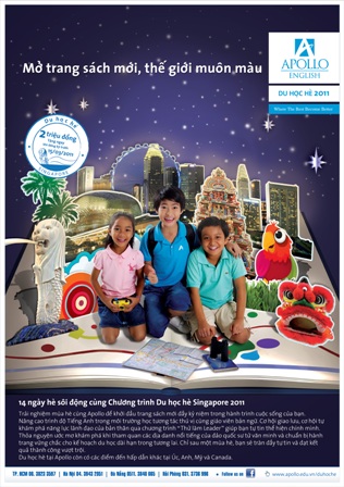 Vài năm trở lại đây, mùa hè đã trở thành cơ hội bổ ích cho các bạn trẻ tham gia các chuyến du học hè ở những đất nước có nền giáo dục phát triển, vừa trau dồi thêm kỹ năng giao tiếp tiếng Anh ở môi trường quốc tế, vừa tận hưởng những ngày hè năng động, thiết thực và đầy ắp tiếng cười. Như mọi năm, chương trình Du học hè 2011 của Trung tâm Apollo sẽ đưa các học viên đến với nền giáo dục hiện đại bậc nhất tại Singapore và Mỹ. Được thiết kế bài bản và đặt tiêu chí An toàn - Chất lượng và Hiệu quả lên hàng đầu, chương trình không chỉ mang đến những hoạt động thư giãn đúng nghĩa “nghỉ hè”, mà còn rèn luyện kỹ năng sống, giúp các bạn trẻ linh hoạt hơn, năng động hơn trong môi trường quốc tế.