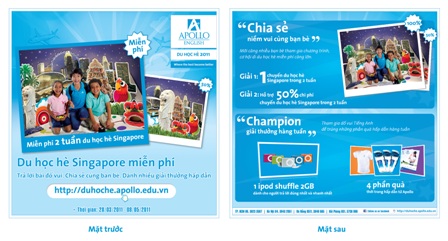 Apollo. Nhưng phần thưởng hấp dẫn nhất chính là chuyến du học hè miễn phí kéo dài suốt 2 tuần tại Singapore sẽ dành cho thành viên nào tham gia cuộc thi đố vui và sau đó chia sẻ trang web này đến với đông đảo bạn bè quan tâm. Trong số gần 5000 thành viên đăng ký tham dự cuộc thi này, bạn