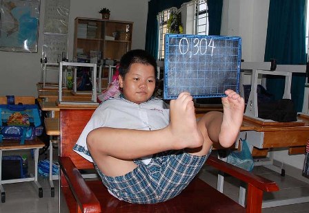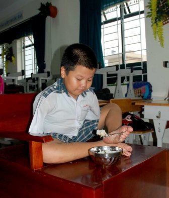 Dưới đây là hình cảnh của cậu bé Vũ Minh Hùng với đôi bàn chân kỳ diệu của mình: