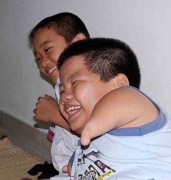 Dù thiếu vắng đôi tay nhưng xung quanh Hùng luôn có những cánh tay khác sẵn sàng chìa ra giúp đỡ cậu trong cuộc sống cũng như học tập. Đó là người mẹ của em, từ lúc mang thai biết con không lành lặn vẫn quyết tâm sinh ra em. Khi đưa em vào lớp 1 cứ đến giờ trưa là mẹ lại chạy vào trường để giúp các cô bảo mẫu cho Hùng ăn cơm, thay quần áo. Mẹ em cũng không quên dặn dò các cô giáo để mắt tới cậu bé hiếu động và nghịch ngợm này. Vì cậu bé thường xuyên té ngã trong những trò chạy nhảy, có khi phải nhập viện khâu mấy đường trên đầu.
