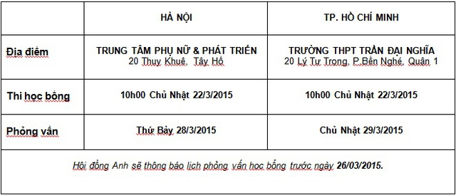 Đợt phỏng vấn và thi học bổng chương trình A-Level khóa tháng 9/2015 và 2016