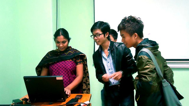 Lớp học của chúng tôi chỉ có khoảng hơn 20 sinh viên. Điều đặc biệt là, chúng tôi được học tập cùng các giảng viên và sinh viên quốc tế.