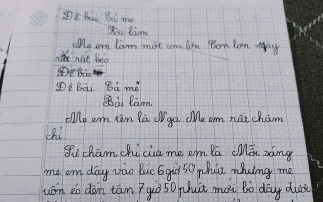 Chẳng hạn như cách đây không lâu, bài văn tả mẹ của một cậu bé tiểu học đã được chia sẻ rộng rãi trên mạng xã hội, khiến nhiều người không nhịn được cười: