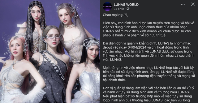 Đại diện công ty quản lý cho biết hành vi này vi phạm quyền sở hữu trí tuệ, đồng thời khẳng định nhóm LUNAS chỉ hoạt động trong lĩnh vực âm nhạc kể từ khi chính thức ra mắt vào ngày 04/04/2024. Mọi hoạt động thương mại hoặc hợp tác sử dụng tên gọi, hình ảnh của LUNAS nếu không được công bố trên các kênh truyền thông và mạng xã hội chính thức của nhóm đều không có giá trị xác thực.