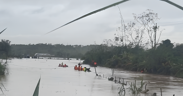 Đến tối, mưa vẫn không ngớt. Dưới ánh đèn pin và đèn pha, lực lượng cứu hộ tiếp tục dùng thuyền, lưới và các phương tiện tìm kiếm suốt đêm.