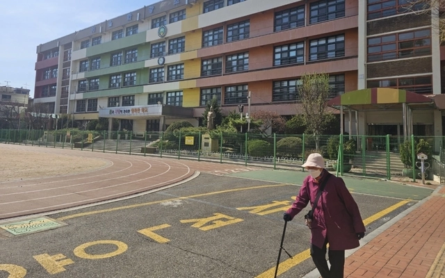 Một bà cụ tập thể dục trong khuôn viên trường Tiểu học Hwayang (Seoul) - nơi phải đóng cửa năm 2024 vì thiếu học sinh (Ảnh: The Korea Herald)