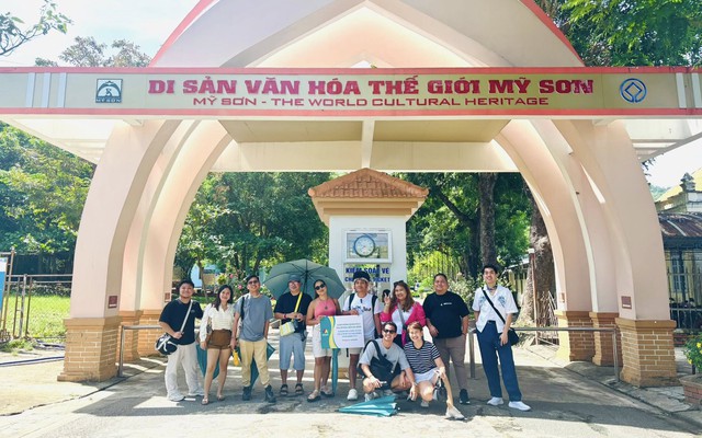 Những năm qua, Mỹ Sơn đã chào đón nhiều đoàn KOLs, blogger du lịch nổi tiếng trong và ngoài nước đến tham quan, trải nghiệm và chia sẻ cảm nhận trên các nền tảng mạng xã hội như: TikTok, Instagram (Ảnh: Ban quản lý Di sản văn hóa thế giới Mỹ Sơn)