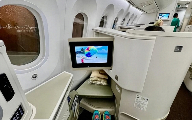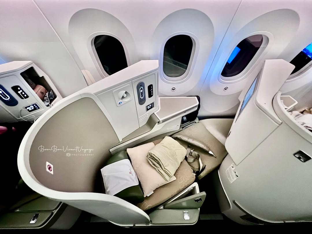 Ghế hạng thương gia có thể nằm thoải mái (Ảnh: @boonbonvivantvoyage)